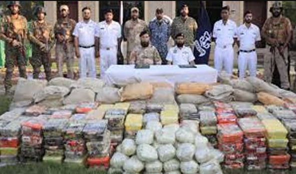 इस्लामाबाद। पाकिस्तान की नौसेना ने नशीली गोलियों की एक बड़ी खेप सहित बड़ी मात्रा में ड्रग्स को जब्त करने में सफलता हासिल की है। पाकिस्तानी सेना ने सोमवार शाम एक बयान में इसकी जानकारी दी है। पाकिस्तानी सेना की मीडिया शाखा, इंटर-सर्विसेज पब्लिक रिलेशंस (आईएसपीआर) ने कहा कि नौसेना ने ऑपरेशन के दौरान दो हजार किलोग्राम हशीश, 370 किलोग्राम बर्फ (क्रिस्टल मेथ) और 50 किलोग्राम हेरोइन जब्त की हैं।