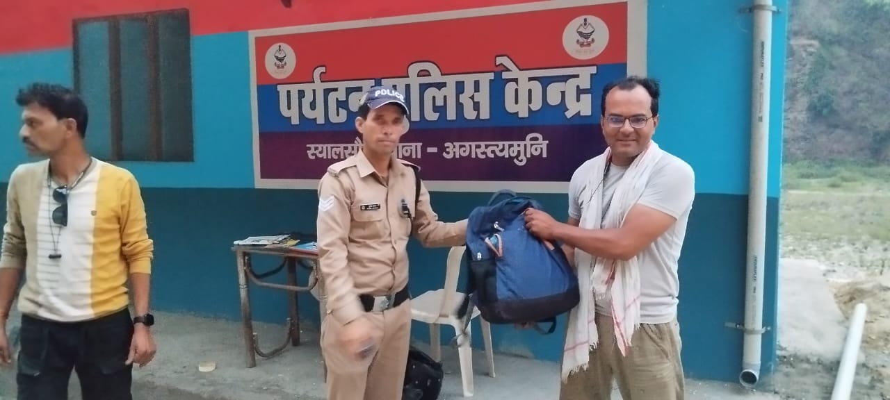 श्री केदारनाथ धाम यात्रा पर भोपाल मध्य प्रदेश से आये श्रद्धालु अजय कुमार पटेल ने थाना अगस्त्यमुनि क्षेत्रान्तर्गत स्यालसौड़ बैरियर पर आकर सूचना दी कि उनका बैग कहीं खो गया है, जिसमें आवश्यक सामान तथा 10000 रूपये थे। इस सूचना पर स्यालसौड़ बैरियर में नियुक्त पुलिस कर्मियों द्वारा श्रद्धालु की परेशानी को समझते हुए उनका मोबाइल नम्बर तथा पता लेकर धैर्य बंधाया गया तथा बैग को ढूंढ़ने का आश्वसन देकर श्री केदारनाथ धाम को रवाना किया गया। रुद्रप्रयाग पुलिस द्वारा श्रद्धालु की समस्या को गम्भीरता से लेते हुए अथक प्रयासों से श्रद्धालु का बैग सकुशल बरामद किया गया तथा तत्पश्चात श्रद्धालु से फोन से सम्पर्क किया गया। सम्पर्क करने पर उनके द्वारा बताया गया कि वे केदारनाथ धाम में हैं।