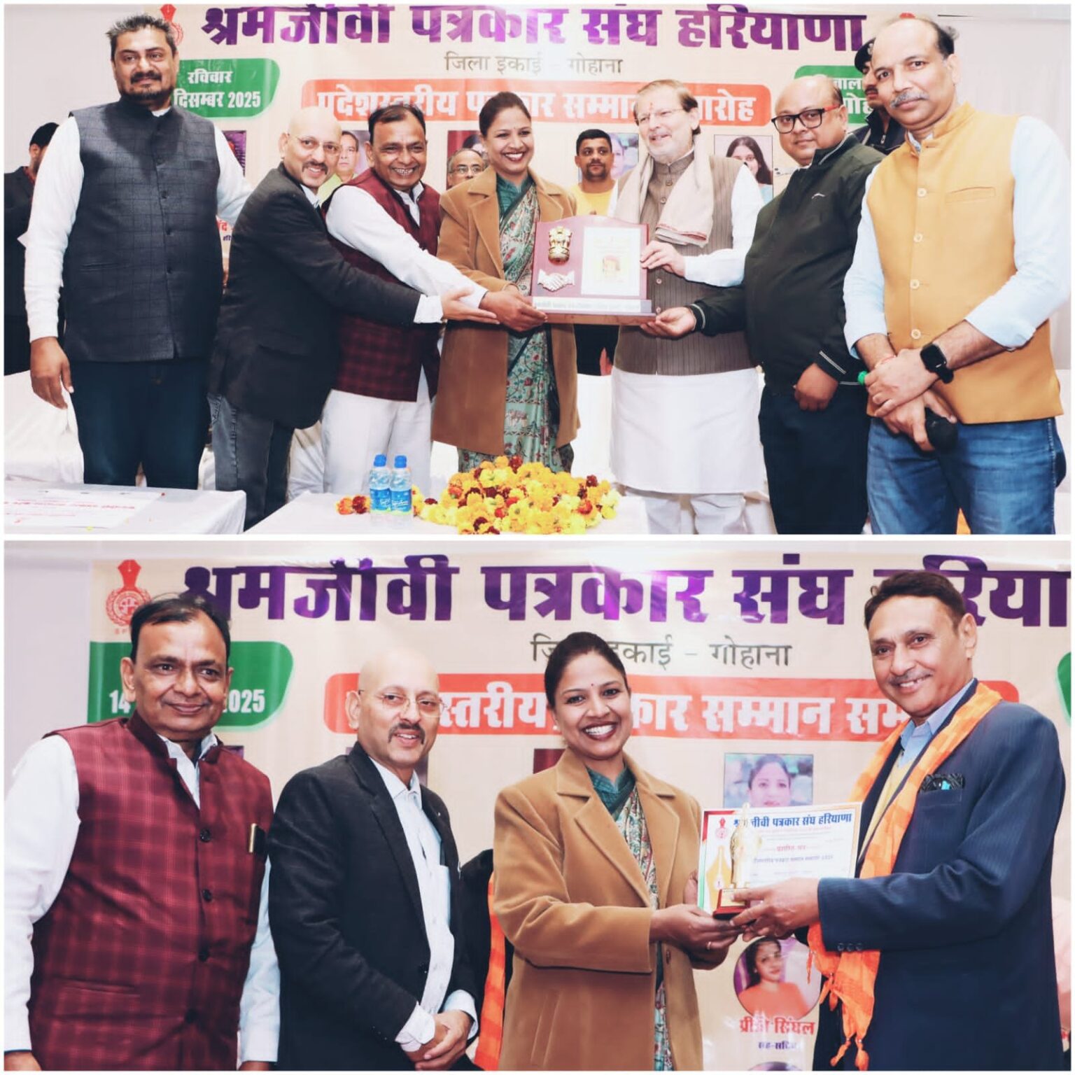 गोहाना की पुरानी सब्जी मंडी स्थित शिवाला मस्तनाथ मंदिर में आयोजित श्रमजीवी पत्रकार संघ हरियाणा के 6वें प्रदेशस्तरीय पत्रकार सम्मान समारोह में प्रदेश के 14 जिलों के सैकड़ों पत्रकारों को उत्कृष्ट पत्रकारिता के लिये सम्मानित किया गया।