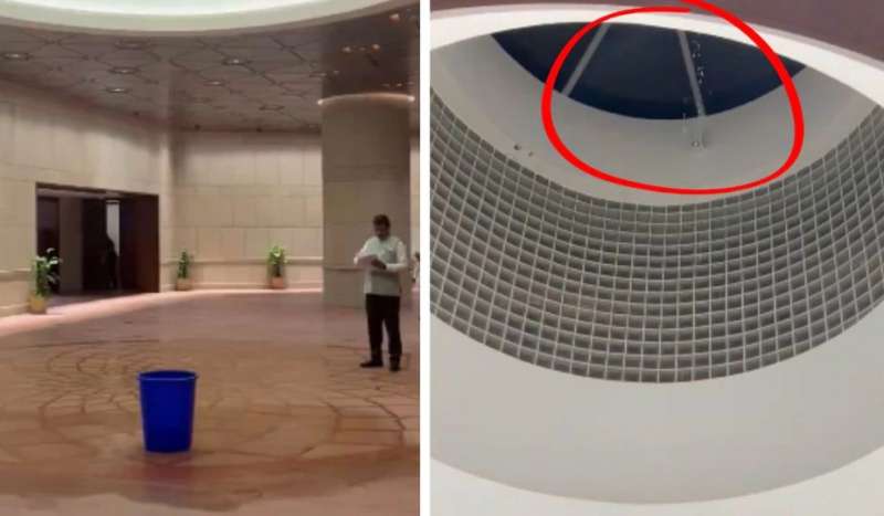 नई संसद की छत से पानी लीक, नीचे बाल्टी रखी