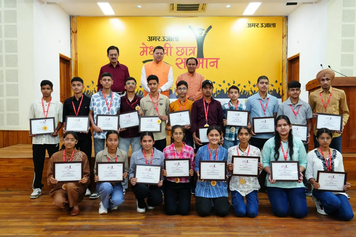 देहरादून : मुख्यमंत्री पुष्कर सिंह धामी ने मुख्यमंत्री आवास स्थित मुख्य सेवक सदन में मेधावी छात्र सम्मान समारोह में उत्तराखण्ड माध्यमिक शिक्षा बोर्ड के हाईस्कूल और इण्टरमीडिएट के 75 मेधावी छात्र-छात्राओं को सम्मानित किया। अमर उजाला समाचार पत्र द्वारा आयोजित कार्यक्रम में मुख्यमंत्री ने कहा कि इस सम्मान समारोह के माध्यम से अमर उजाला प्रतिवर्ष हमारे राज्य के प्रतिभावान छात्रों को सम्मानित कर उनका उत्साहवर्धन कर रहा है।