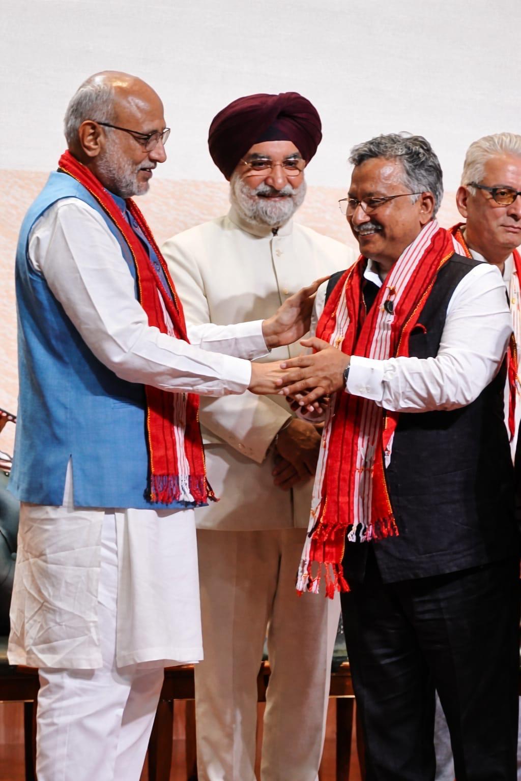आज भारत मंडपम, नई दिल्ली में आयोजित ITITI, दून संस्कृति स्कूल, देहरादून के रजत जयंती समारोह के अवसर पर ‘विज्ञान और प्रौद्योगिकी के माध्यम से जनजातीय जीवन में परिवर्तन’ विषय पर एक राष्ट्रीय सम्मेलन के दौरान भारत के माननीय उपराष्ट्रपति श्री सी.पी. राधाकृष्णन द्वारा यूकॉस्ट के महानिदेशक प्रो. दुर्गेश पंत को विज्ञान एवं प्रोद्योगिकी के क्षेत्र में उत्कृष्ट कार्यों के लिए सम्मानित किया गया।